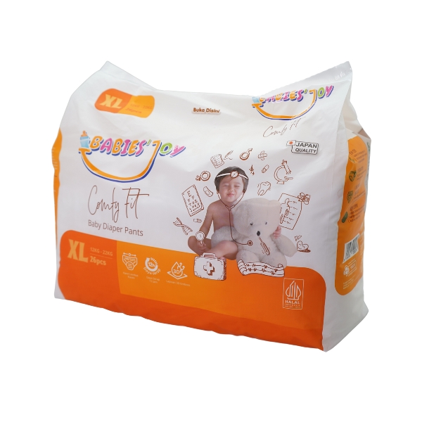Memilih popok yang tepat adalah kunci untuk menjaga kulit bayi tetap sehat, lembut, dan bebas iritasi. Babies Joy hadir sebagai popok berkualitas tinggi dengan standar Jepang, dirancang khusus untuk memenuhi kebutuhan kulit sensitif si kecil. Dengan teknologi mesin Jepang memastikan proses produksi higienis, serta sertifikasi Halal, Anda tak perlu lagi khawatir.