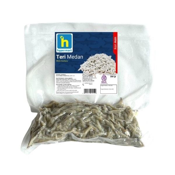 Teri Medan dari Hypermart, terbuat dari teri bayi pilihan yang diproses higienis dan diawetkan dengan garam. Kemasan ekonomis, harga kompetitif, dan telah lulus uji BPOM.