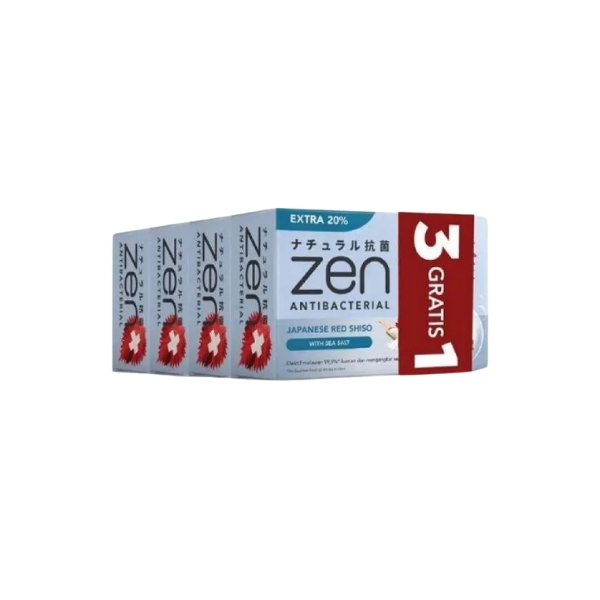 ZEN ANTIBACTERIAL BAR SOAP JAPANESE RED SHISO WITH SEA SALT PACK 4X60 GR